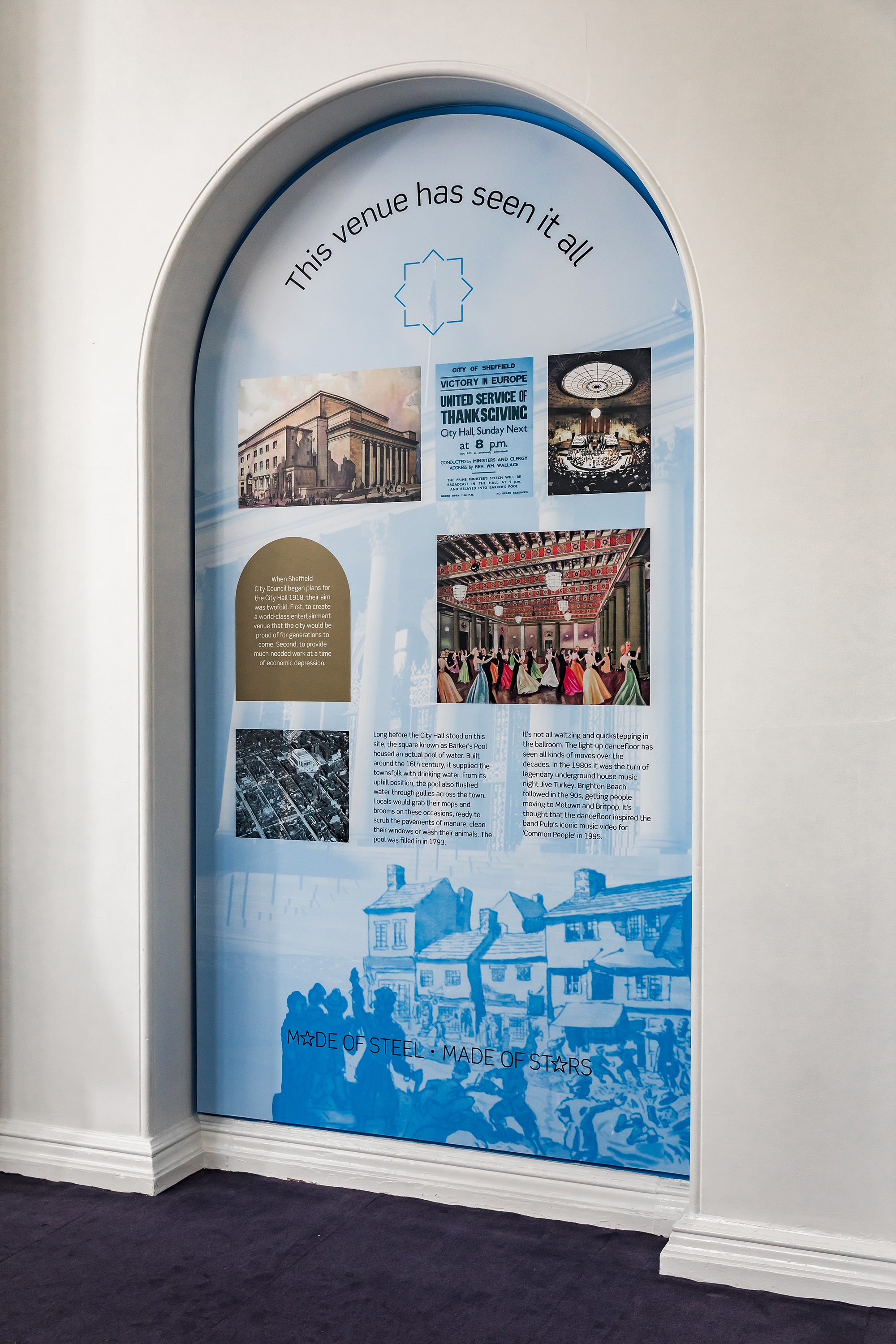 Built in the 1920s, Sheffield City Hall is a much-loved venue in the heart of the city. We were asked to refresh the brand identity to deliver a more refined look. The team also tasked us with devising ways to tell stories about the building’s heritage.