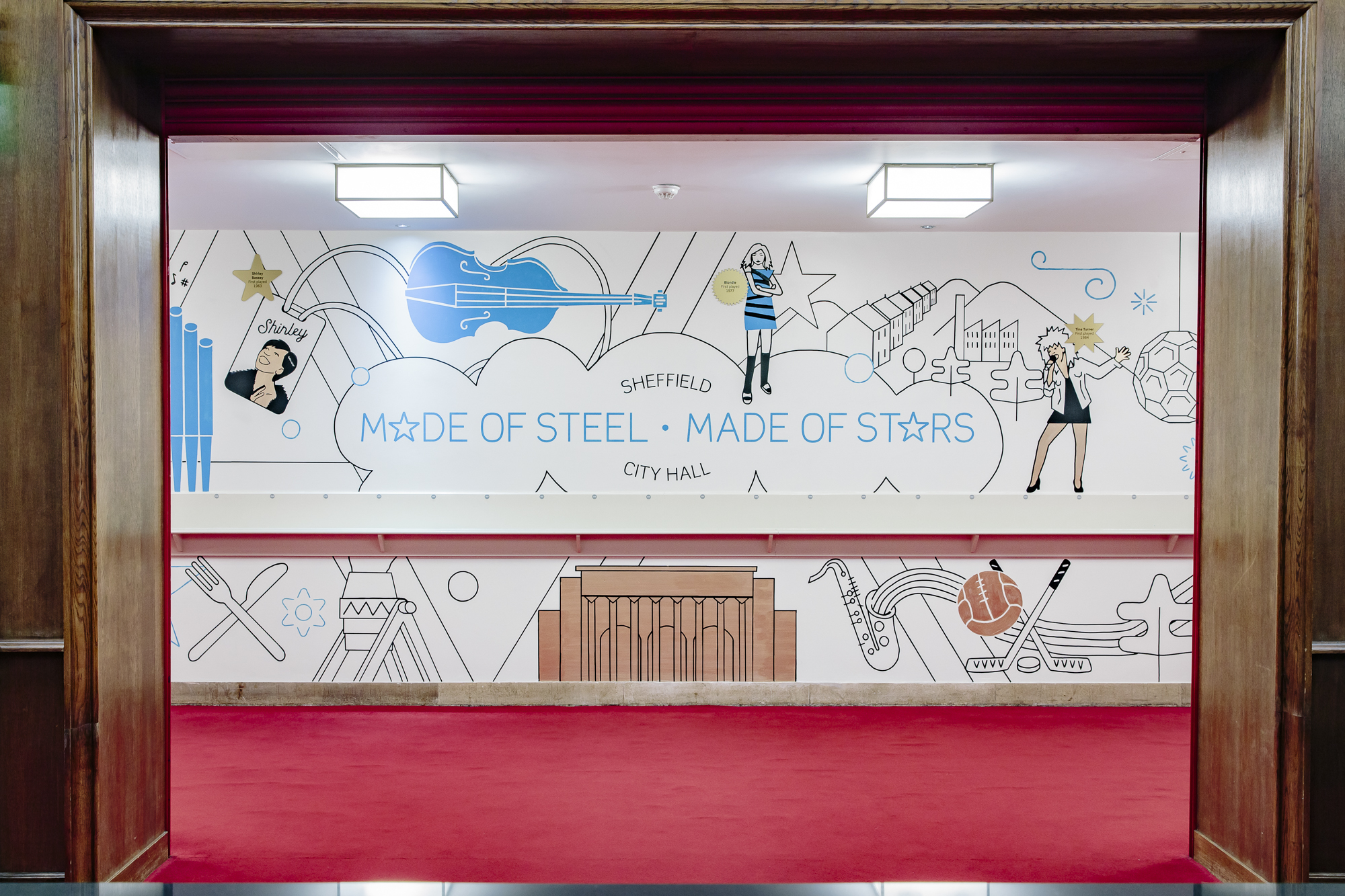 Because we had a lot of room to play with, we suggested a series of large-scale murals to show some of the acts who’ve appeared at the City Hall over the years. The murals reinforce the importance of the building and the variety of people who’ve performed on its stages.