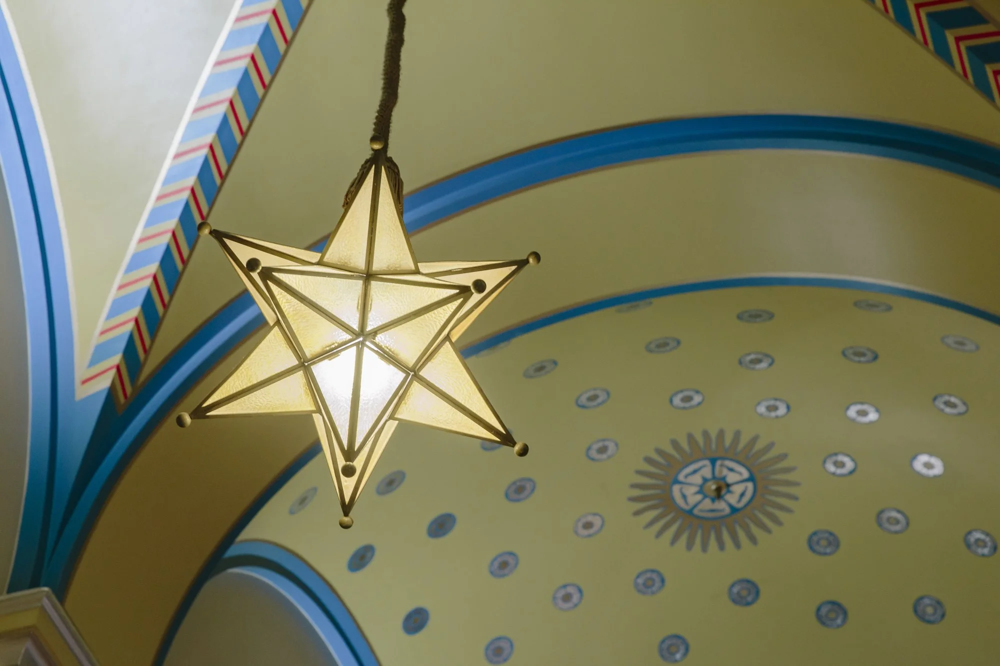 We took inspiration from motifs and colours in the building – there are stars everywhere, and those blue gates were a gift – drawing on them to create a visual language that works across multiple brand touchpoints.
