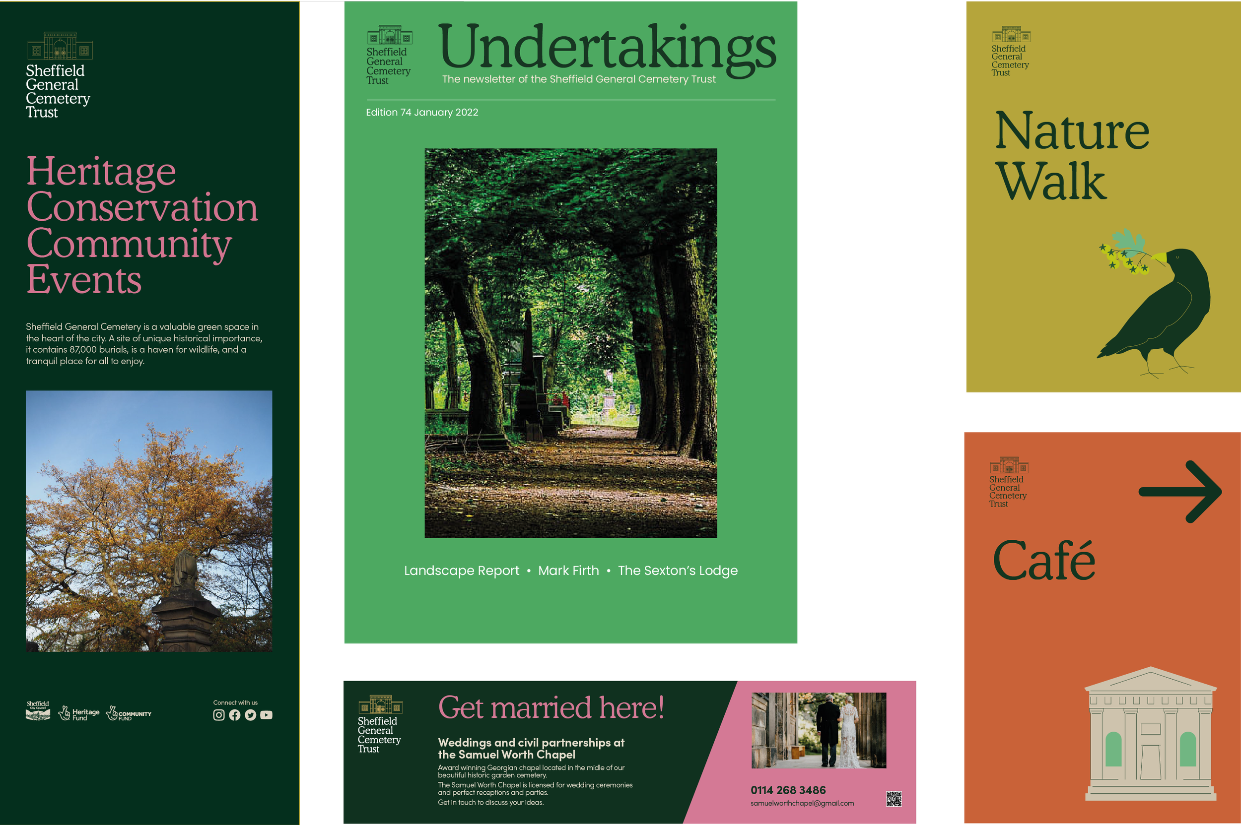 We rebranded Sheffield General Cemetery Trust as they embarked on a Heritage Lottery-funded restoration project. They’re turning this wonderful Victorian cemetery in the heart of Sheffield into an event space, visitor centre, cafe and nature reserve.
